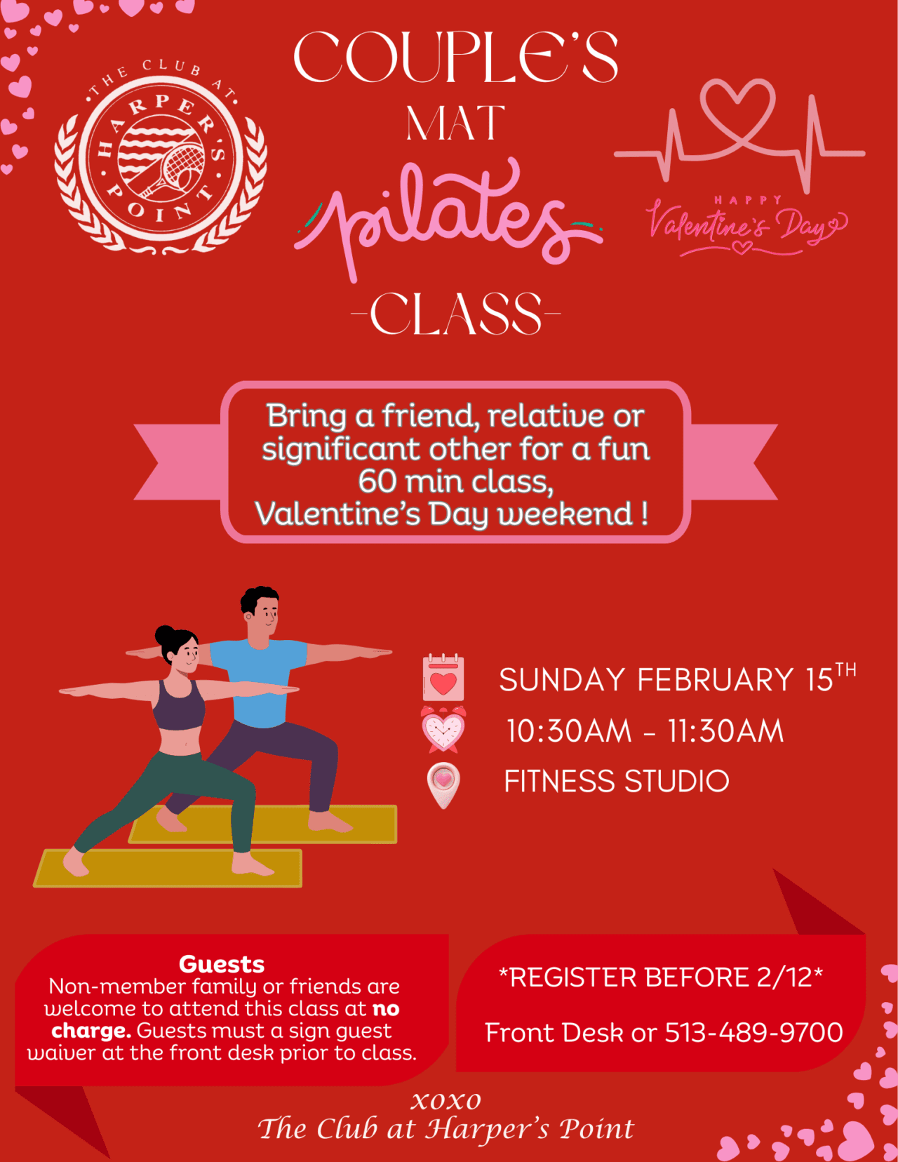 Couples Mat Pilates – Bring A Friend To Class on Sunday, February 15th. Details Here…
