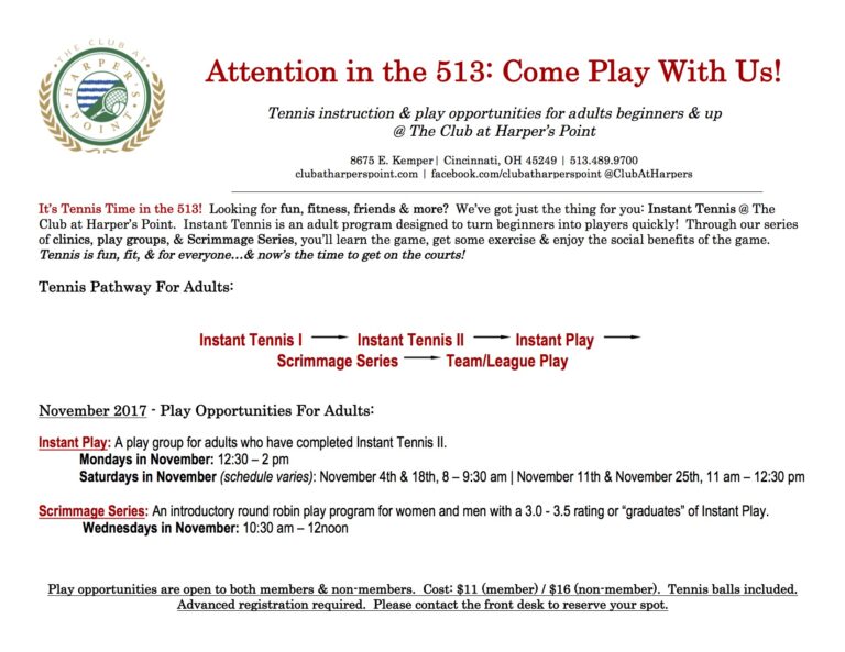 Attention In The 513: Play Tennis! Instant Tennis Play & Scrimmage Series