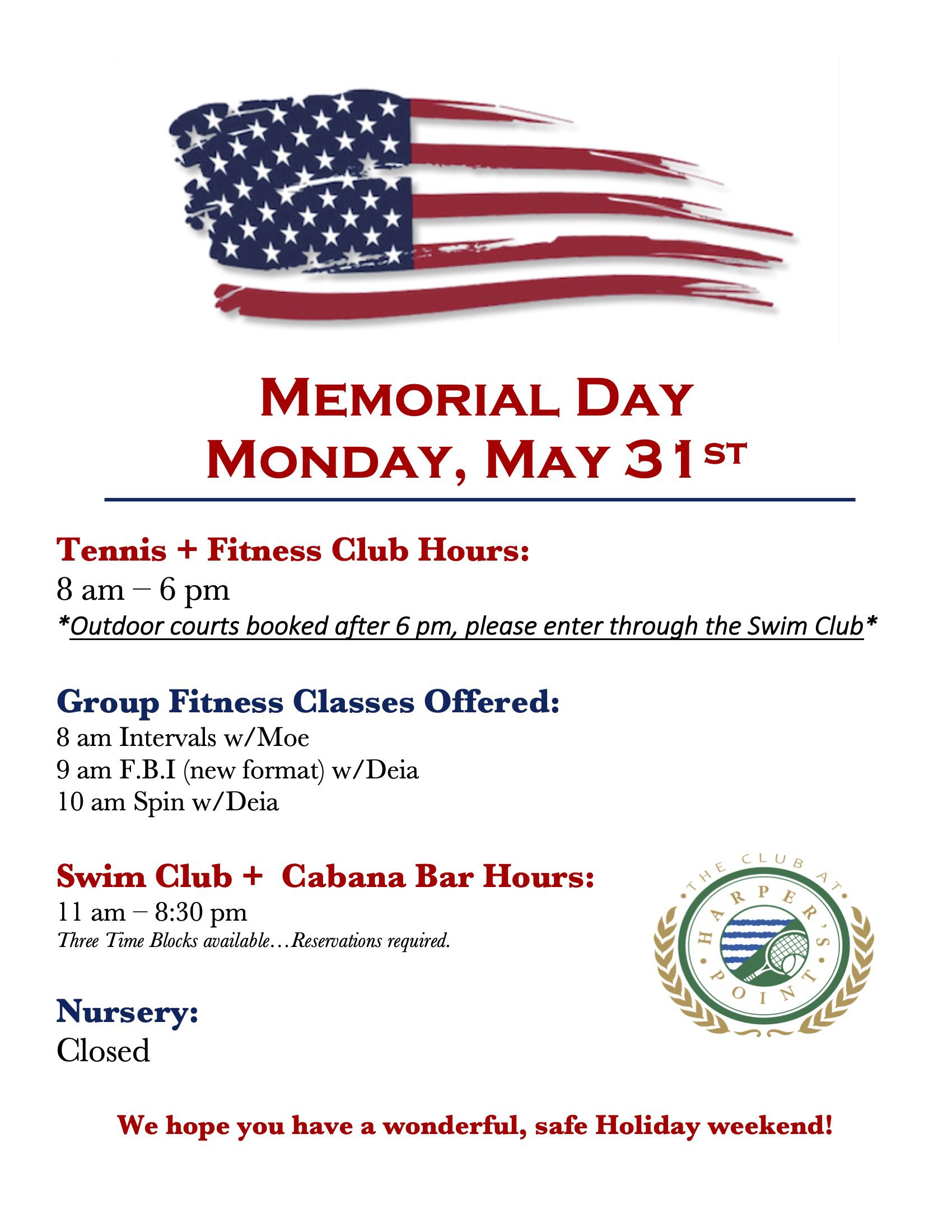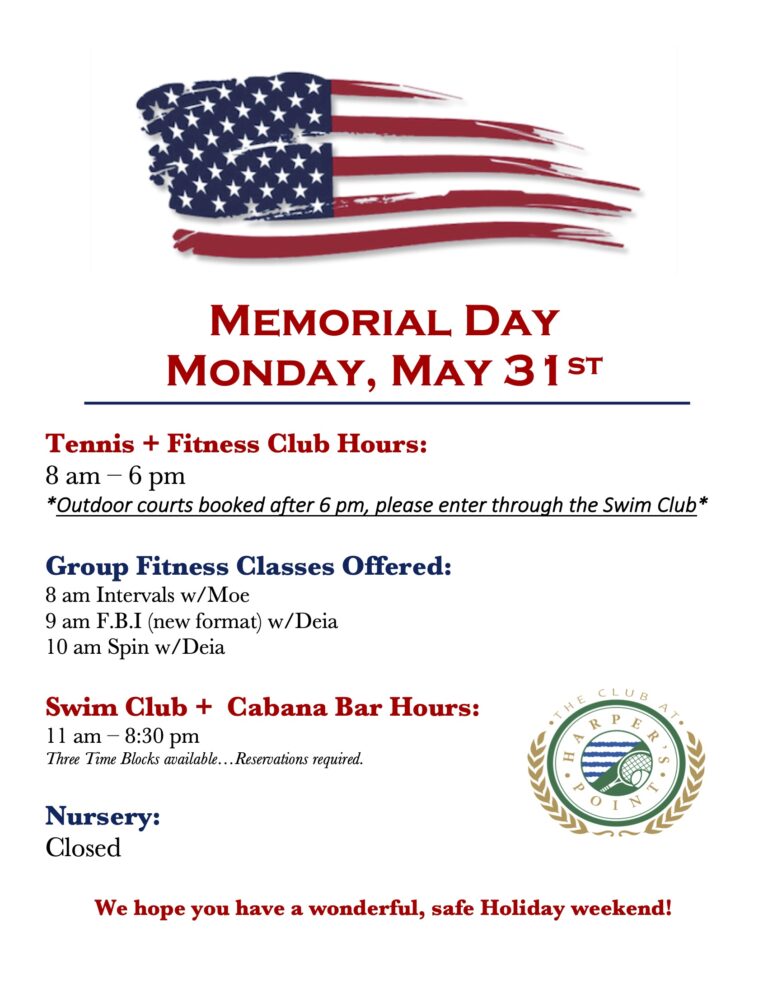 Memorial Day at The Club: Adjusted Hours and Activities. Details Here…
