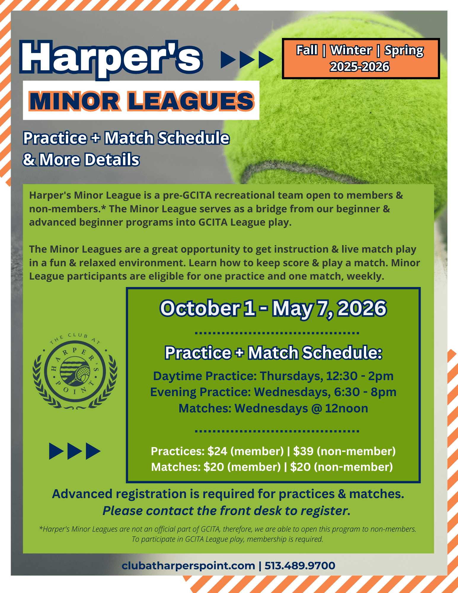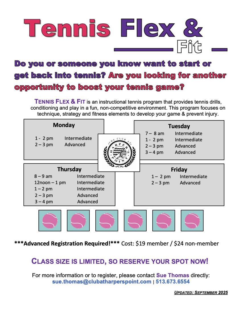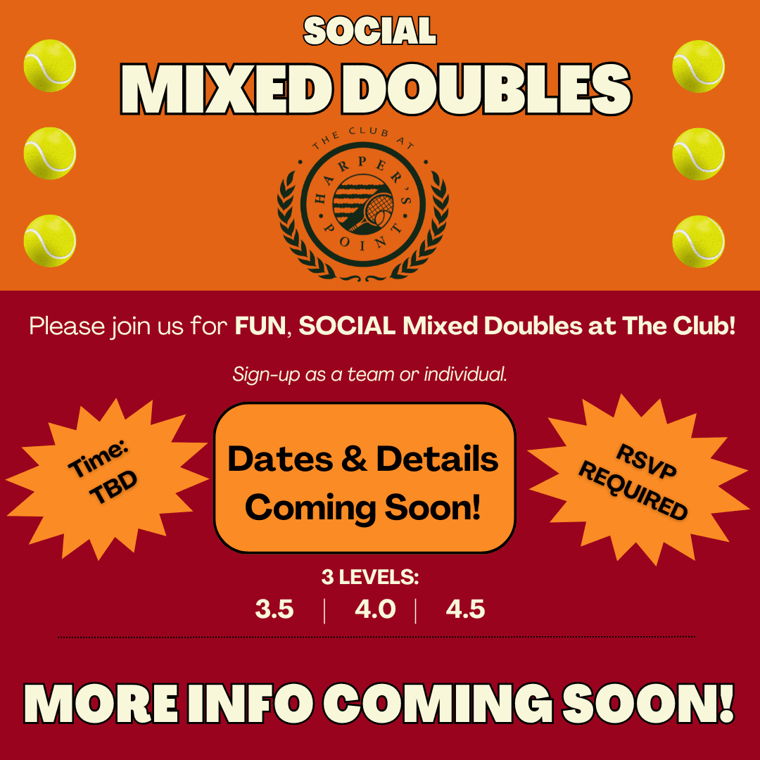 Please see below for a current schedules for Mixed Doubles, Tennis Flex & Fit, and the Minor Leagues. For more information on activities available to our full Club members, please see below.
