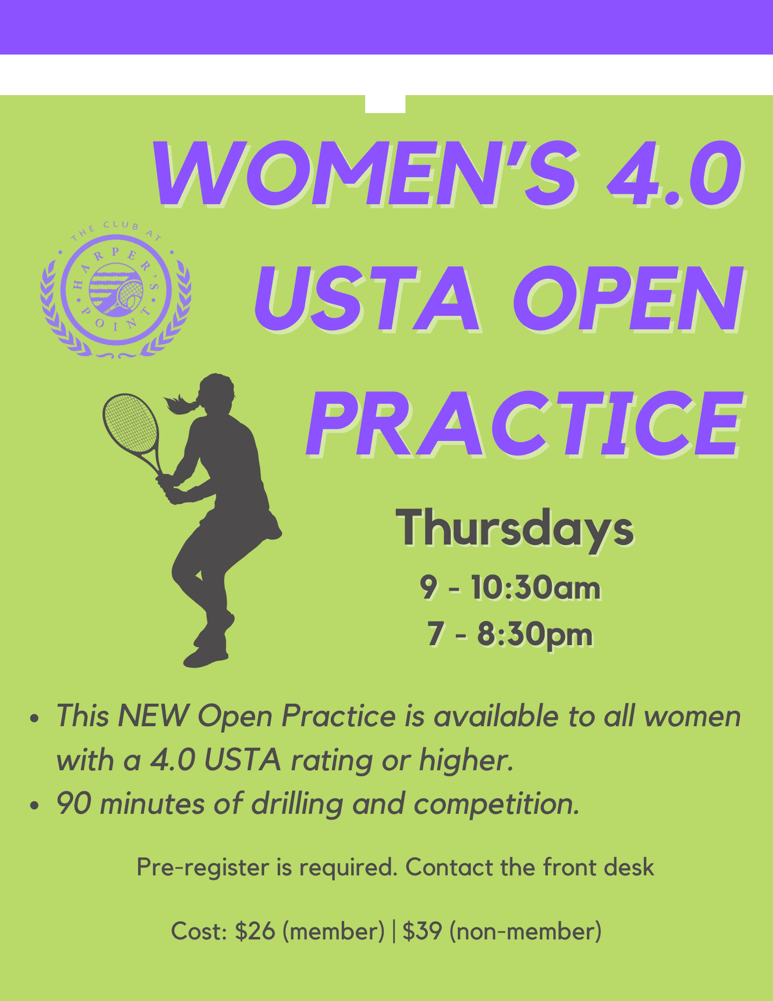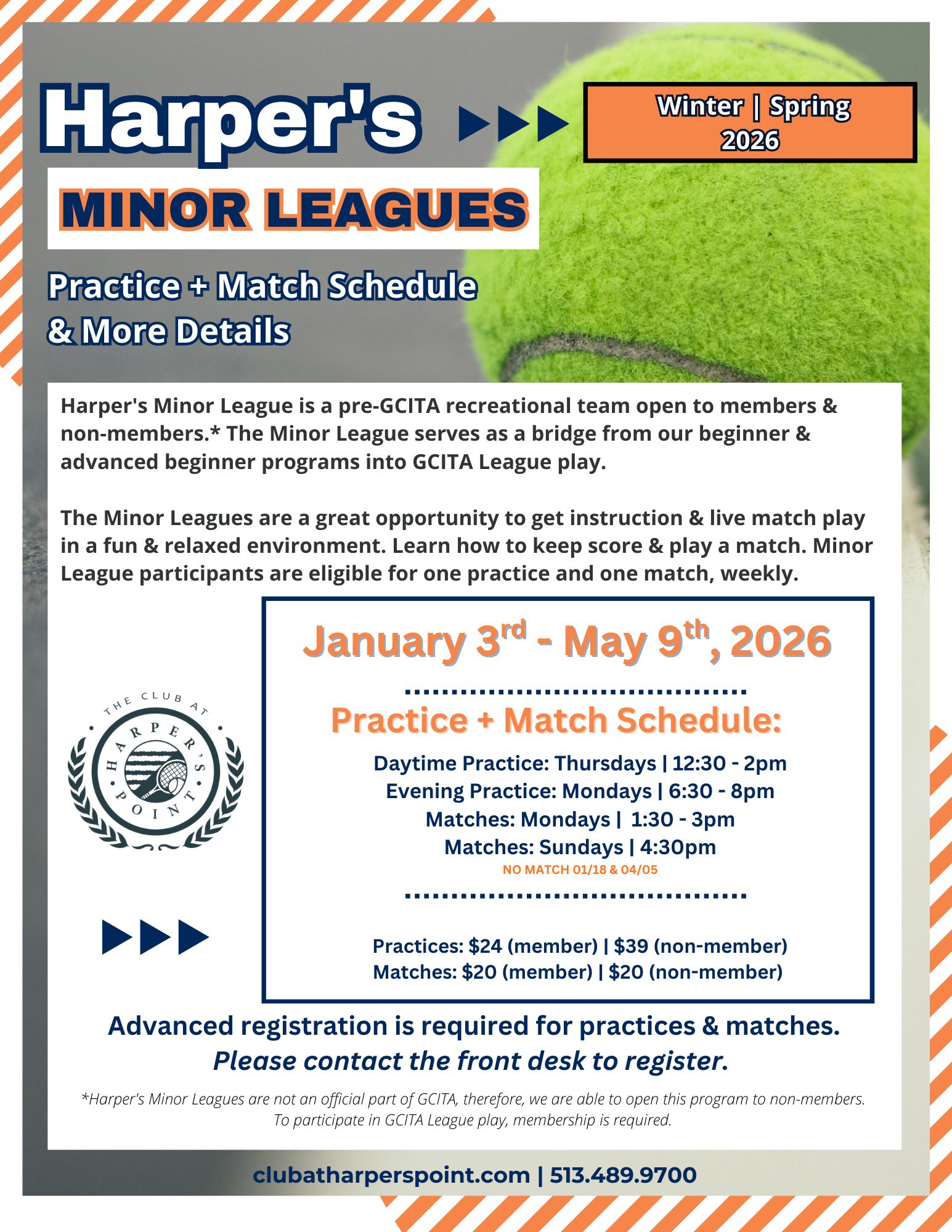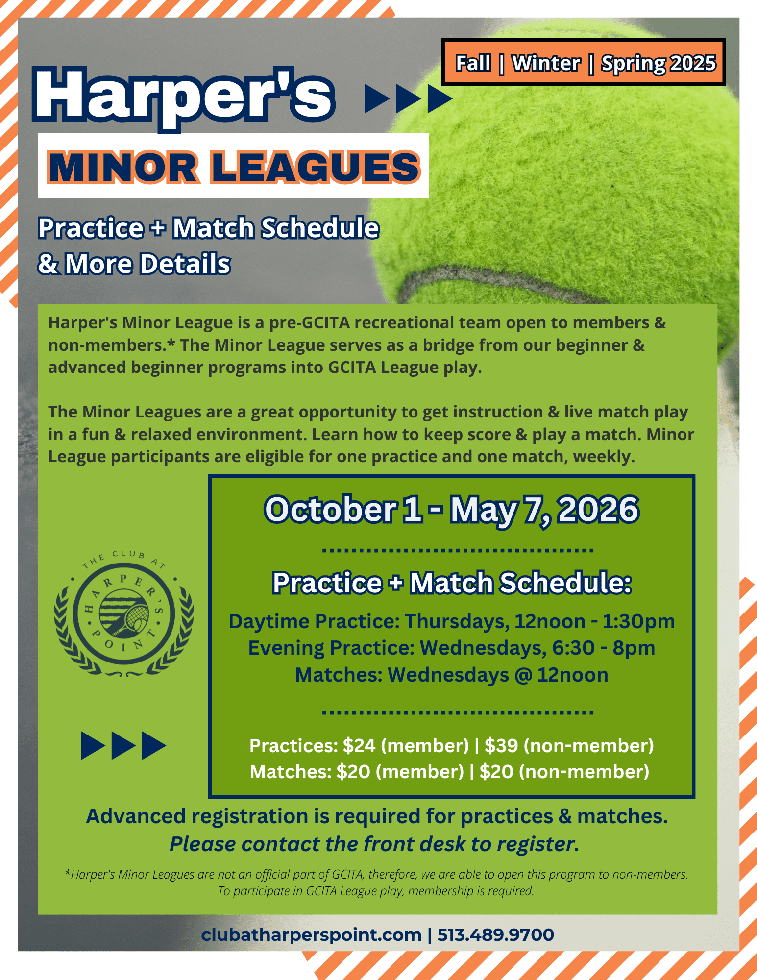 Please see below for a current schedules for Mixed Doubles, Tennis Flex & Fit, and the Minor Leagues. For more information on activities available to our full Club members, please see below.